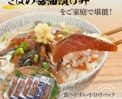 高知県土佐市のふるさと納税の返礼品 高知県土佐市のふるさと納税の返礼品『獲れたてサバの醤油漬け丼(4P)セット』を紹介します。寄付金は、5,000円です。 黒潮の恵み豊かな漁場で日戻り漁で水揚げしたサバのみを使用。振り塩・・・