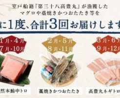 高知県室戸市のふるさと納税の返礼品 高知県室戸市のふるさと納税の返礼品『マグロとカツオの定期便【3回お届け】』を紹介します。寄付金は、60,000円です。 室戸船籍『第三十八高豊丸』漁獲の刺身用マグロやそのマグロを主原料・・・