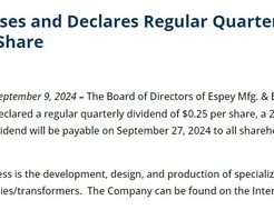 こんにちは。時短父さんです。 Espey Mfg.& Electronics Corp.(ESP)という銘柄をご存知でしょうか? この銘柄驚くべきことに今年に入って3回目の増配を発表しました。通常は年1回の増配で・・・