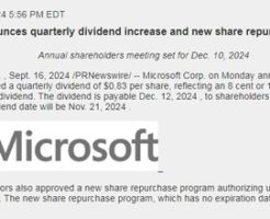 【MSFT】マイクロソフトが10%増配を発表したよ!(´ω`=´ω`)ノ