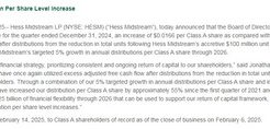 こんにちは。時短父さんです。 あまり興味がないかと思いますが、私が今年のNISA成長投資枠で買っているヘス・ミッドストリーム(HESM)が2024年12月期の四半期分配金を発表しました。 プレスリリースによると、分配金単・・・