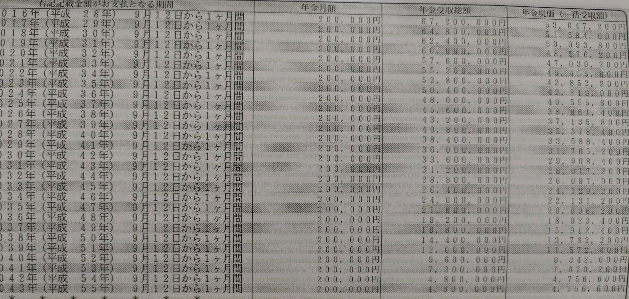 一括でも受け取れますし、年金として月額20万円を受け取る、でも良いようにしています。