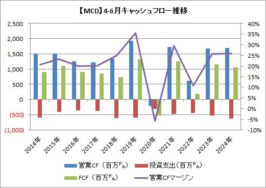 米マクドナルド(MCD)がForm 10-Qを発表しましたね。決算発表で触れられていなかったキャッシュ不フローを確認しておきましょう。
