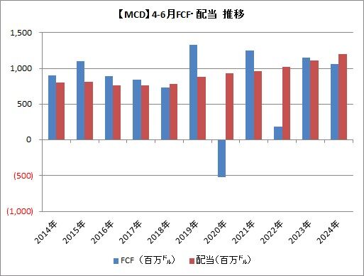 こうやってみると、4-6月期単体では、配当がFCFを上回る年が時々あったことが分かります。