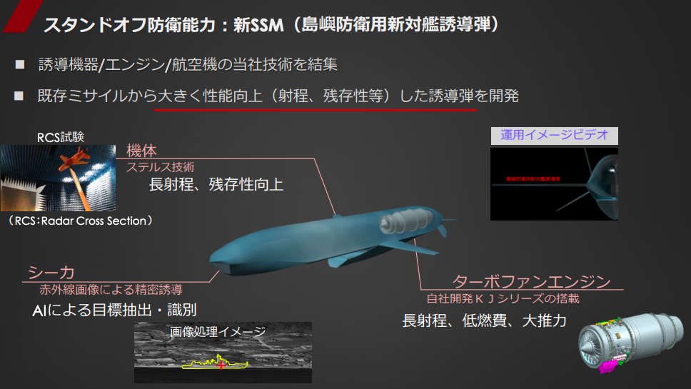 島嶼防衛用新対艦誘導弾とは、国内唯一のターボファンエンジンが搭載されることで射程が長く、ステルス技術や赤外線による誘導などが採用されたミサイルです。