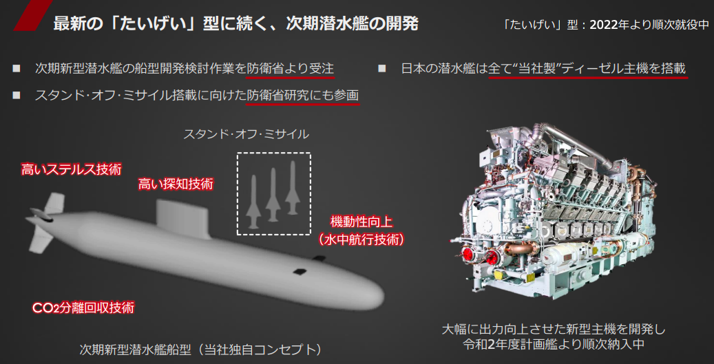 潜水艦に関しては最新の「たいげい」型に続く新しい機体を開発しており、高いステルス性能、高い探知技術、機動性向上などを実現する予定とのこと。