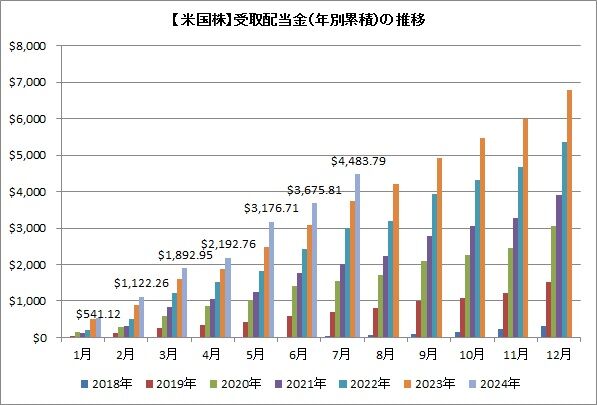 まずは7月末時点での受取配当金ですが、4,483.79ドル(進捗率56%)でした。