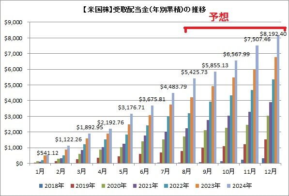 これは、今年の米国株(ADR含む)からの配当受取額の目標にしていた金額です。