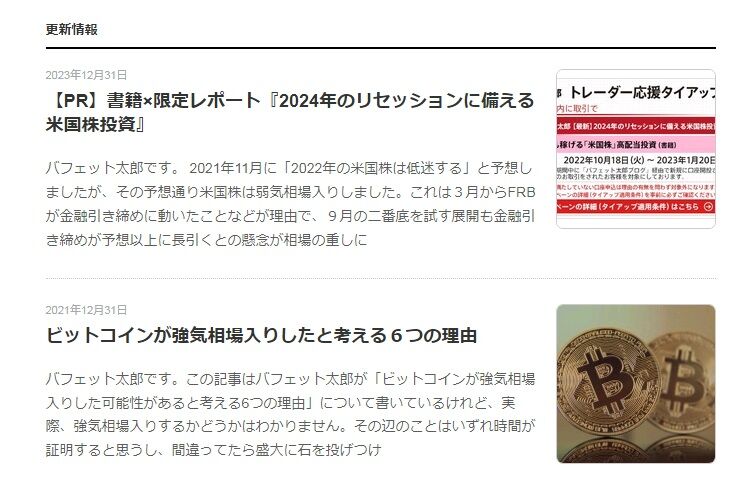 そして、久しぶりにバフェット太郎さんのブログを覗いてみました。最後の更新は2023年12月31日となっています。
