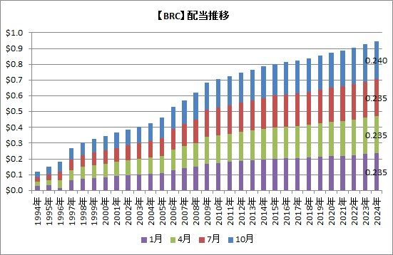 同社のプレスリリースによると年間配当は従来0.94ドル⇒新たに0.96ドルに、四半期配当は0.24ドルとのことです。
