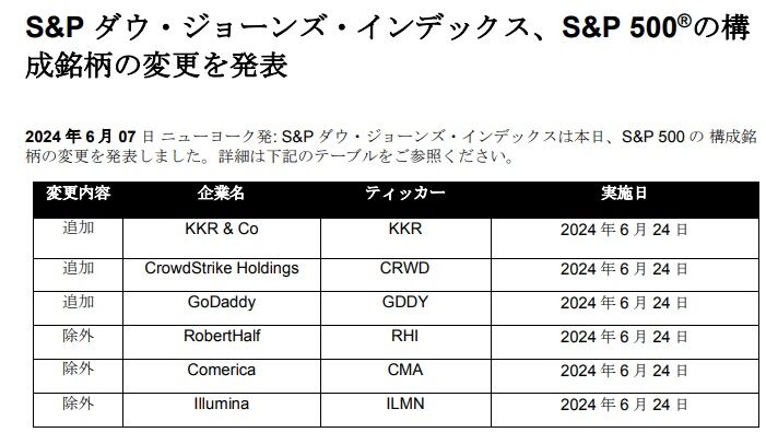 すると、意外とS&P500ってしょちゅう銘柄入れ替えをやっているんですね。あ、脱落(除外)があるということは、別に採用(追加)される銘柄もあるってことですからね。