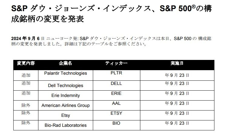 確かに、主要株価指数から脱落する(除外される)銘柄というのは、S&P500に限っていえば、時価総額が53億ドルあるなど、一定の株価水準が要求されています。