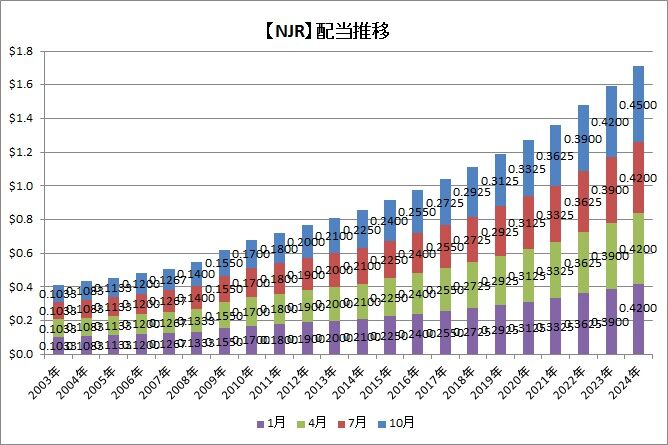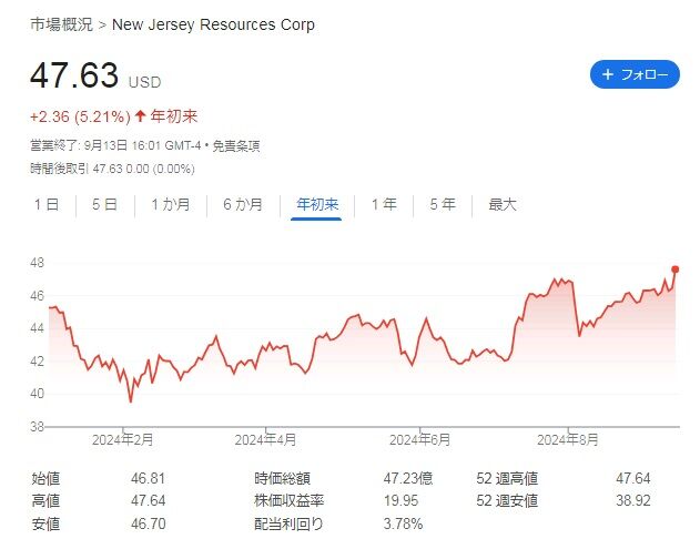 その後、自分なりに調べていたところ、ちょうど先週にニュージャージー・リソーシズ(NJR)というエネルギー銘柄が増配していることを知りました。