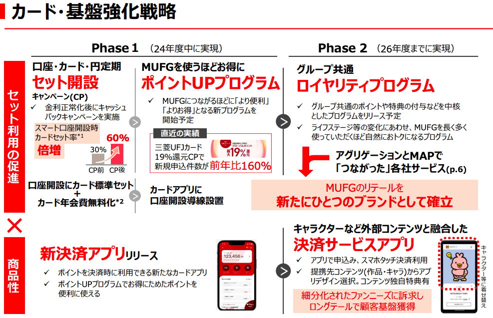 今年6月には顧客情報を無断共有したことによる業務改善命令を金融庁から受けていますが、今年はクレジットカードの基盤を強化する戦略があるとのことです。
