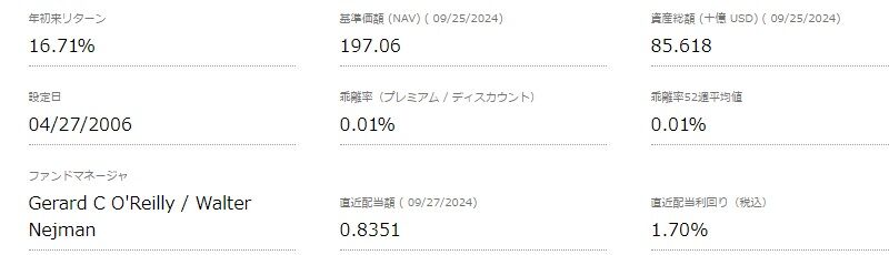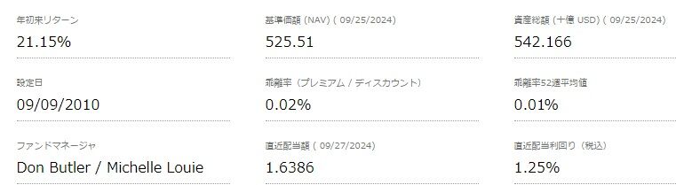 パフォーマンスはやはり素晴らしくて、年初来で+21.11%となっています。配当利回り自体は大したことなくても、キャピタルゲインによってそのマイナスは帳消しできますね。