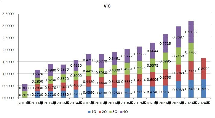 前年同期比9.8%増です。今回の増配で、VOOは12四半期連続増配となりました。