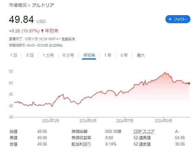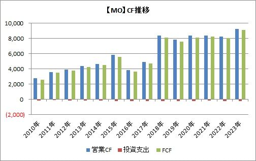 一方で、たばこという商品柄、投資は少なく済み、安定的で莫大なキャッシュがアルトリアには流れこみます。