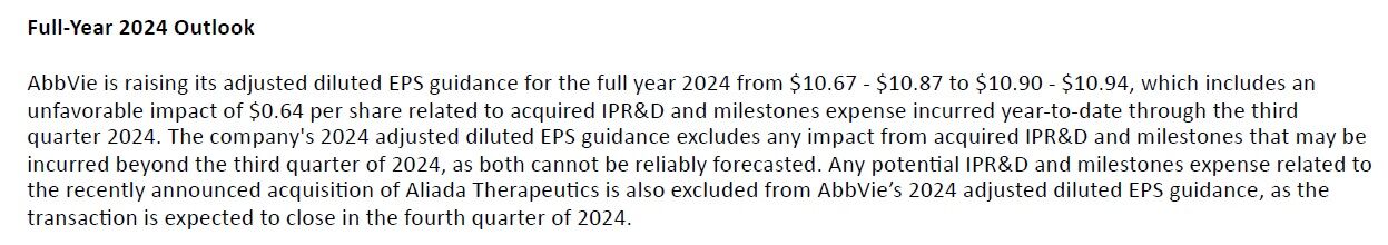 アッヴィは調整後一株利益の見通しを、従来の10.67~10.87ドルから10.90~10.94ドルへと上方修正しました。
