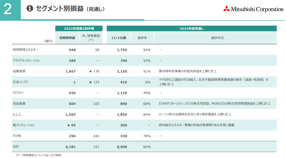 戦争や生成AI等を背景にたエネルギー資源の需要や経済成長による鉄鉱石や銅などの需要が増すほど同社ビジネスは活況となりますが、逆に景気が悪くなると逆回転も早く世界の景気に敏感に反応しやすいのが事業の特徴として挙げられます。