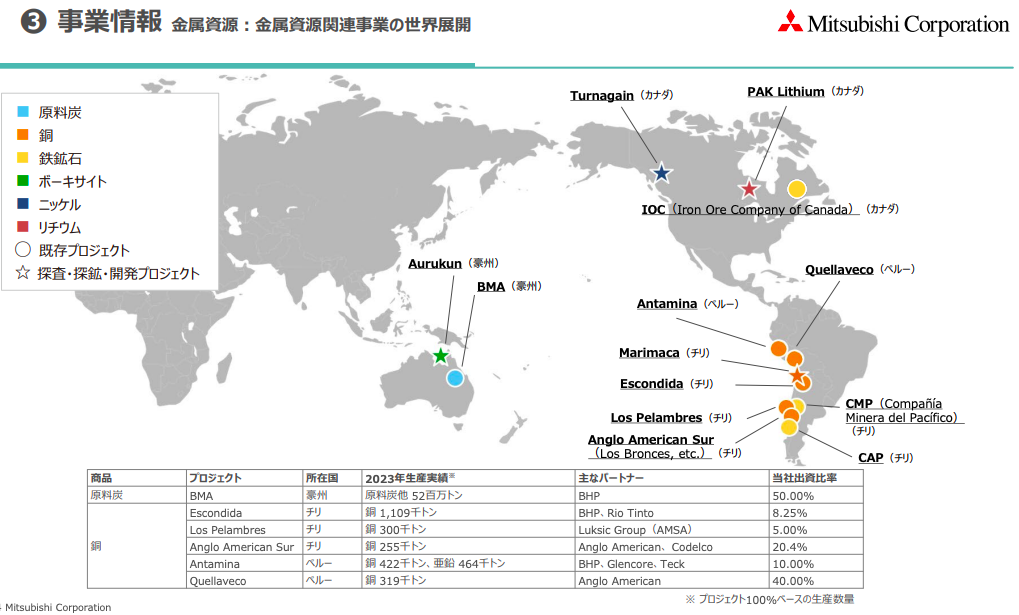 主にオーストラリアでの原料炭生産に注力しており、その他ではチリやペルーで銅の採掘企業へ投資をしています。
