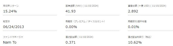 1~11月の累積分配金は1.9386ドルとなりまして、前年同期を3.3%上回っています。12月分配金が0.10386ドル以上で、前年比で増配が確定しますので、ほぼこれは確実でしょう。