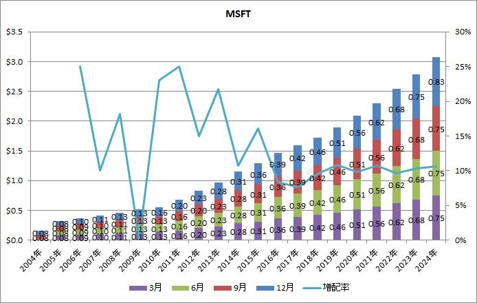 数量は変わらずで来ているんですけど、その間に単価が2回増えている(増配している)ので、受取額もわずかながら増えています。今回もマイクロソフトの配当単価は10%増となっています。