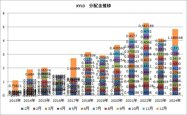 XYLDの分配金が1ドルを超えたのは2017年12月にありましたが、それ以来のことです。