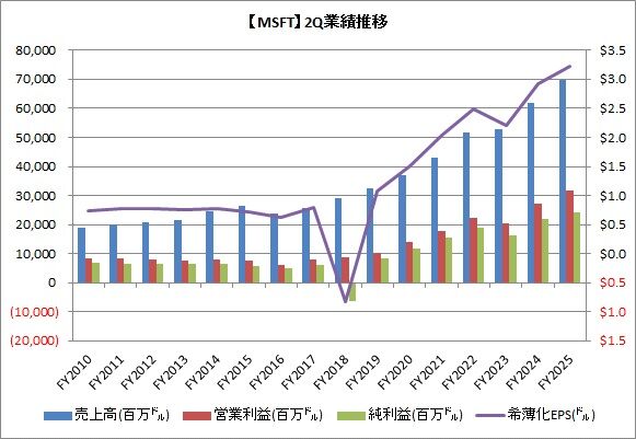 マイクロソフト(MSFT)が10-12月期(FY2025-2Q)の決算を発表しました。内容はまちまちでした。