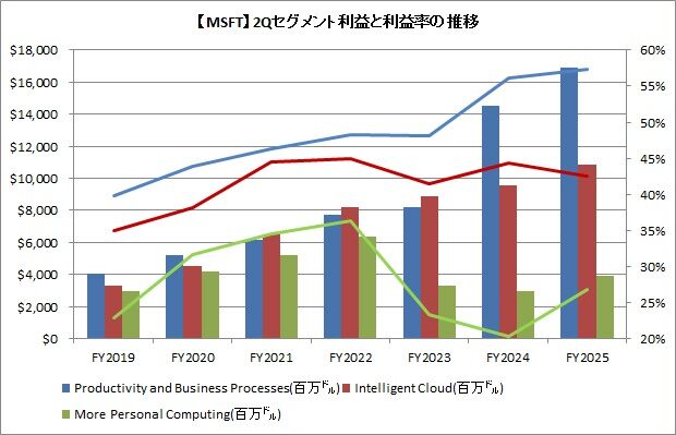 セグメント別では、Intelligent Cloudのセグメント利益率が前年同期比で低下してしまっている点です。というか、ここ数年利益率が40~45%で伸びていないですね。