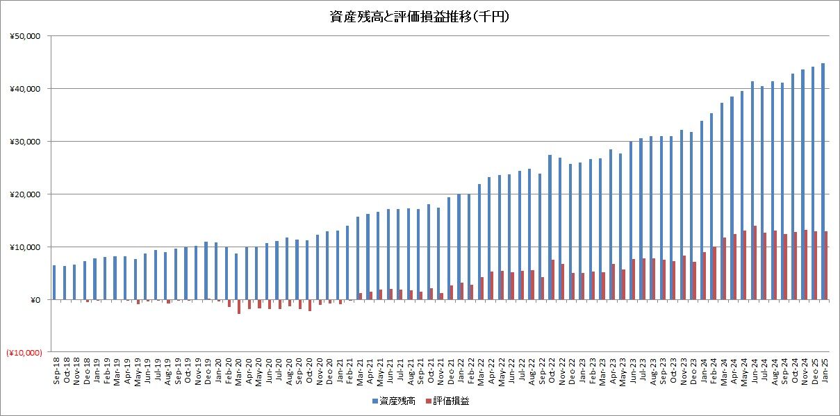 ここ半年以上、評価損益がずーっと横ばいですね、、。