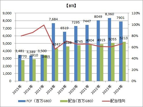 通期の営業CFは101億GBP、FCFは79億GBPでした。それぞれ前年比5.5%減少しています。