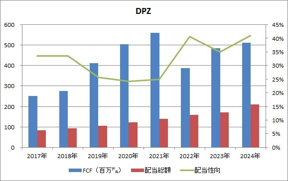 ドミノ・ピザは昨年1年間で210億㌦の配当を支払いました。FCFに占める配当支払額の比率は41%となりました。前年は35%でしたので、やや上昇しましたね。