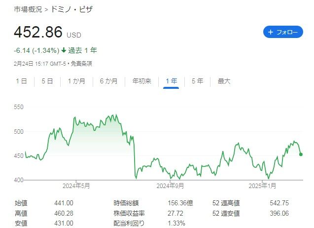ドミノ・ピザ(DPZ)が2024年第4四半期と通期の決算を発表するタイミングで、次期四半期配当の増配を発表しました!