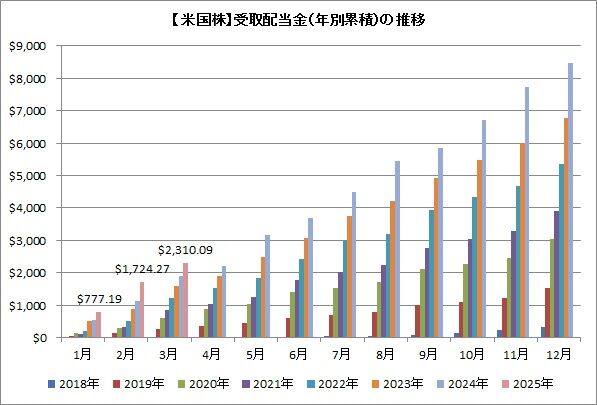 2025年の年間目標は10,000㌦ですから、現時点までの進捗率は23.1%ということになります。