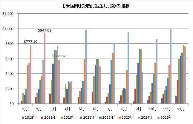 昨年まではMMMを持っていましたし、SDYも持っていました。またQYLDは2ヶ月分の入金がありましたし、3月支払いのVOOとVTVからもありましたが、後者については結局間に合いませんでした。