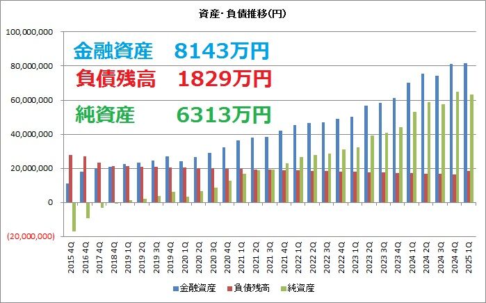 このまま運用を続けて行けば、数年内には金融資産が1億円に乗るでしょう。負債は確実に減らして行きますので、純金融資産でも5年もあれば1億円に届く可能性があります。