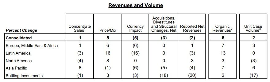 コカ・コーラのガイダンスは以下のようになっています。すみません。従来との比較があまりできていないのですが、プレスリリースによれば、
