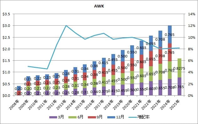 「アメリカン・ウォーターは配当支払において同業のベンチマークとなっており、(中略)今後も一株利益と配当は7~9%の水準で増えて行く」旨の発言をCEOがされています。